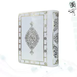 قرآن نیم جیبی گلاسه گالینگور سفید عروس جعبه دار پلاک رنگی نفیس