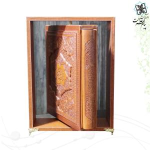 قرآن وزیری گلاسه چرم برجسته مدل قاب چرخشی نفیس