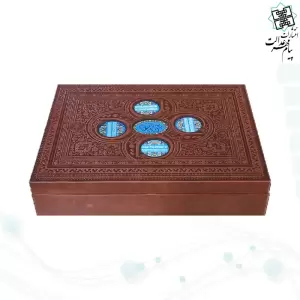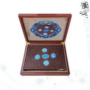 قرآن وزیری معطر بدون ترجمه چرم 4قل پلاک دار جعبه لپتاپی با آینه