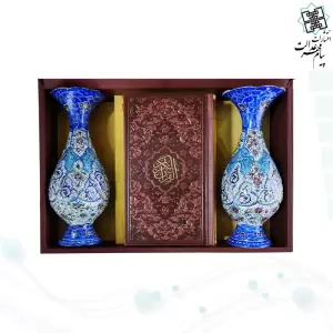 قرآن پالتویی چرم با 2 گلدان مینا