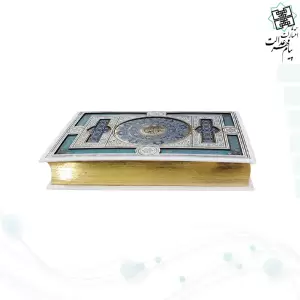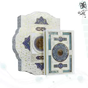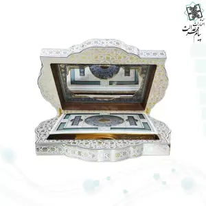 قرآن وزیری بدون ترجمه گلاسه گالینگور سفید جعبه دار طرح صدف پلاک دار با آینه
