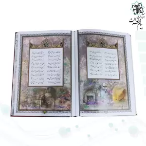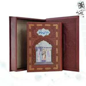 دیوان حافظ وزیری گلاسه تمام مصور چرم جعبه دار با پلاک مقبره لبچاپ