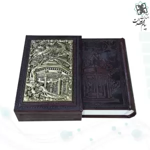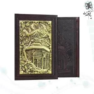 دیوان حافظ جیبی گلاسه چرم قابدار کشویی پلاک فلزی طرح مس مقبره