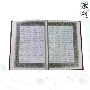 - توضیحات و ویژگی : شاهنامه فردوسی در قطع وزیری، با جلد چرمی زیبا و صفحات گلاسه با کیفیت، مناسب برای هدیه و نگهداری در کتابخانهها، اثری نفیس و ارزشمند از ادبیات کهن ایران است.
